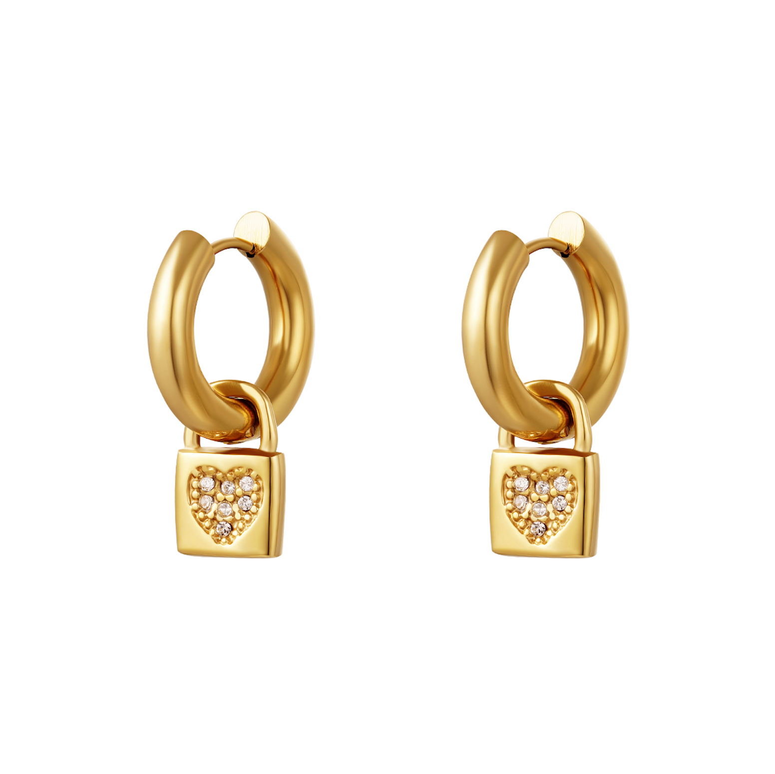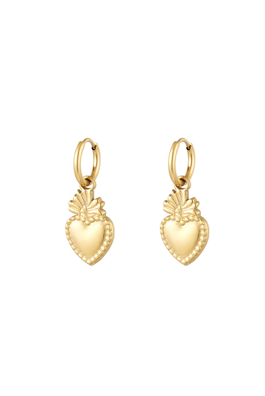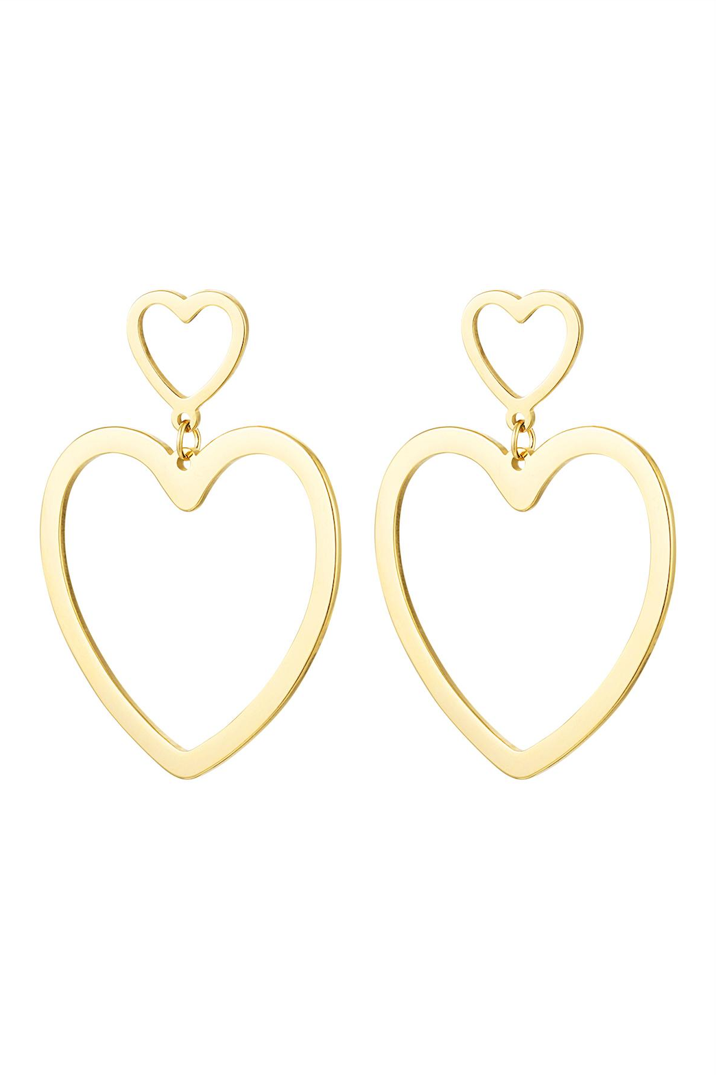 kr. 99,00Gold earrings with a nice charm in the shape of hearts. Super cute and super trendy! Very nice to combine these earrings with their matching necklace and bracelet. The earrings are made of stainless steel. The earrings measure 2.35 cm. Color: Gold Material: Stainless Steel Weight: 3.91g Dimensions: 2.35cm x…