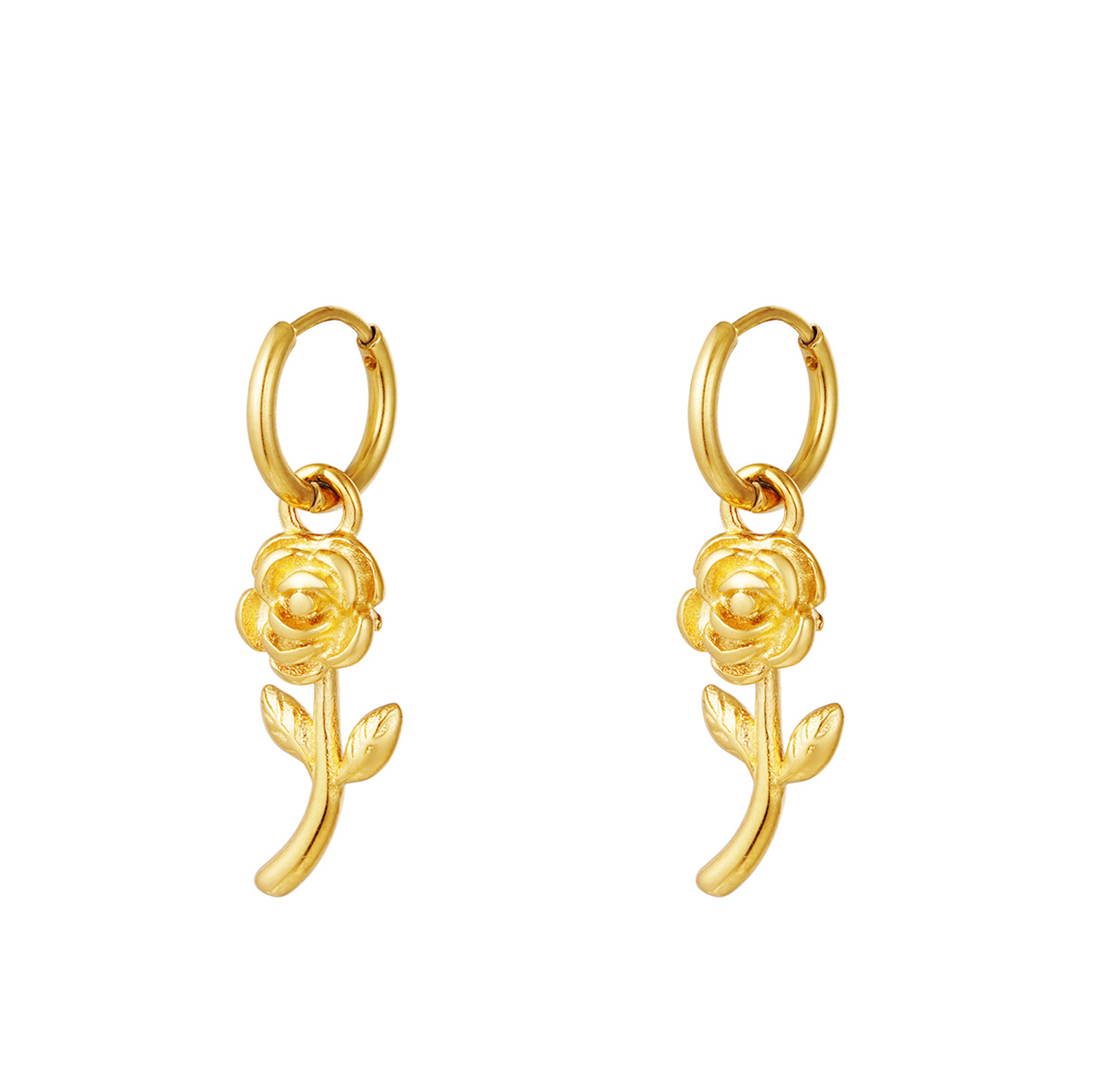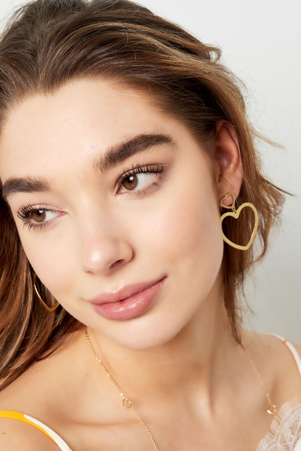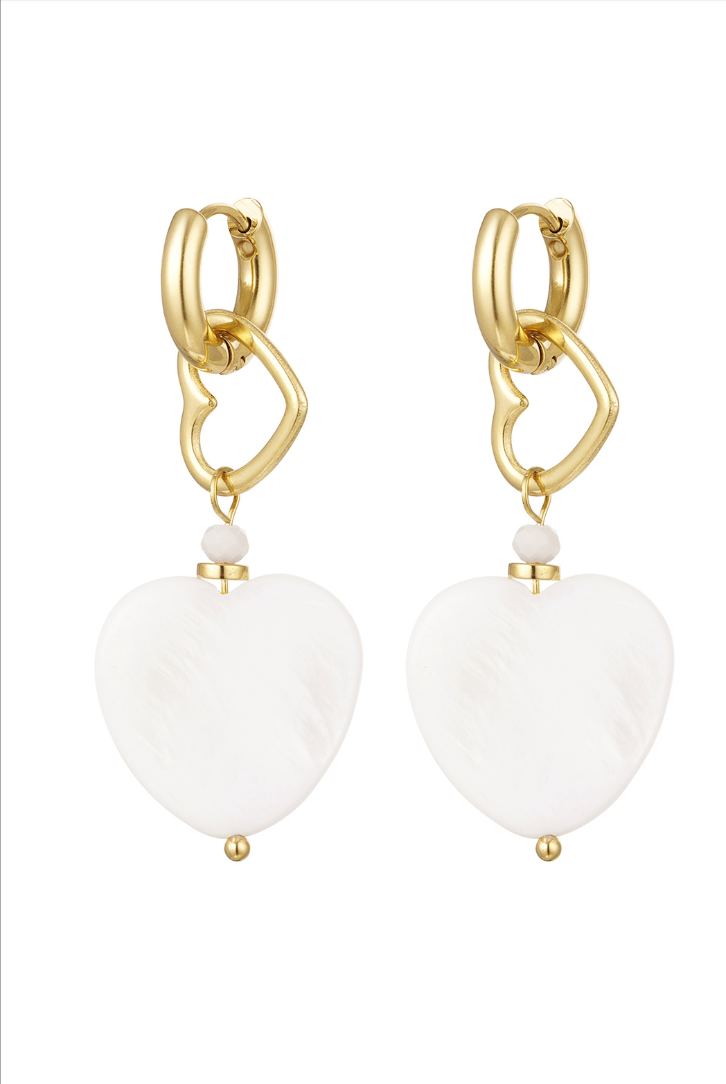 kr. 99,00Gold earrings with a nice charm in the shape of hearts. Super cute and super trendy! Very nice to combine these earrings with their matching necklace and bracelet. The earrings are made of stainless steel. The earrings measure 2.35 cm. Color: Gold Material: Stainless Steel Weight: 3.91g Dimensions: 2.35cm x…