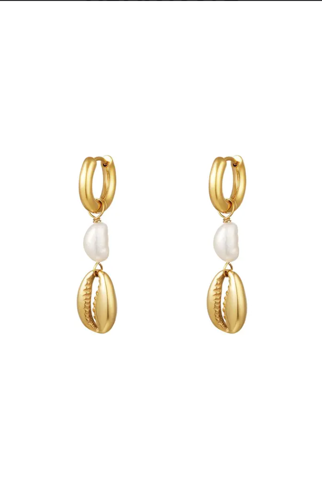 kr. 99,00Stainless steel earrings with a pearl and shell. The earrings are made of stainless steel in the color gold in combination with a freshwater pearl. The length of the earrings are 3.8 cm. Color: Gold Material: Stainless Steel Sub material: Pearls Weight: 7.40g Dimensions: 3.80cm x 1.40cm x 0
